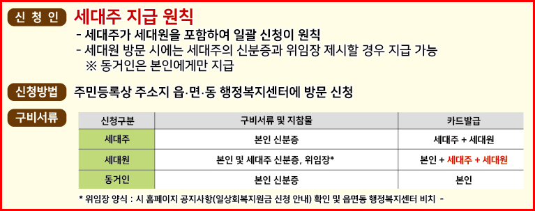 : 세대주가 세대원을 포함하여 일괄 신청이 원칙