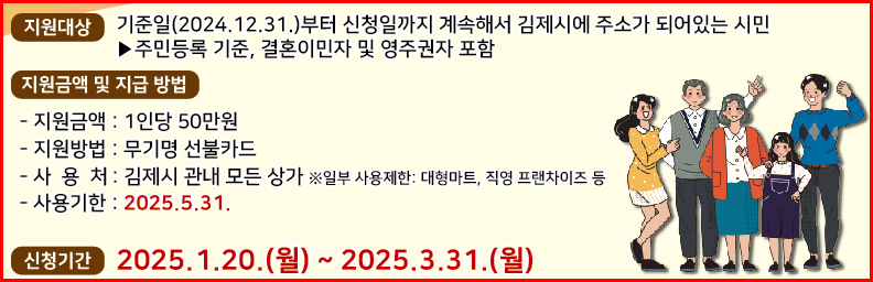 2024.12.31 기준일부터 신청일까지 계속해서 김제시에 주소가 되어있는 시민