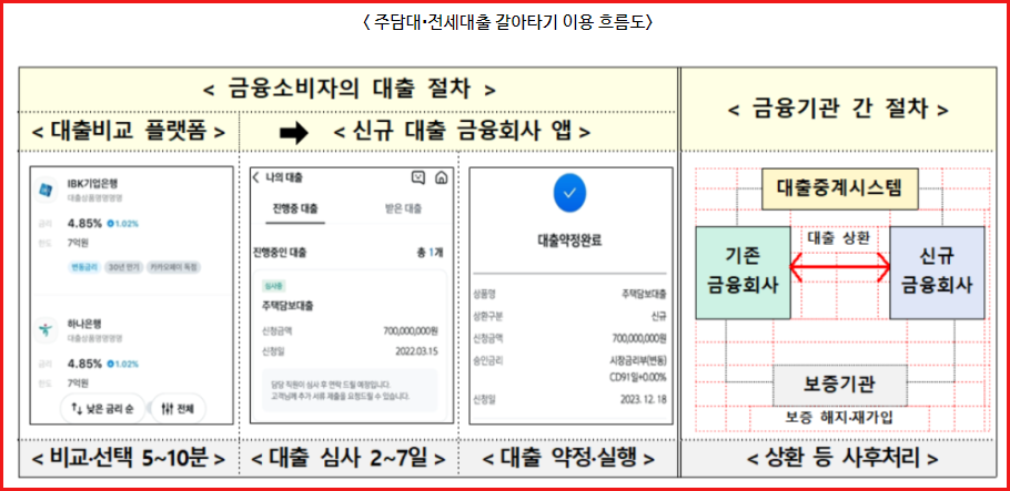 쉽고 편리하게 낮은 금리로 갈아탈 수 있는 온라인 서비스가 아파트 주택담보대출은 2024년 1월 9일부터, 전세대출은 2024년 1월 31일부터 시작한다고 합니다. 아파트 주택담보대출이나 전세대출을 보유하고 계신 분들은 아래내용 참고하시기 바랍니다.