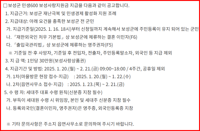 2차(읍면사무소 접수.지급) : 2025.1.23(목)~2.21(금)