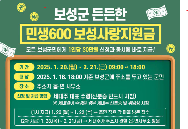 1차(마을방문 현장 접수. 지급) : 2025.1.20(월)~1.22(수)